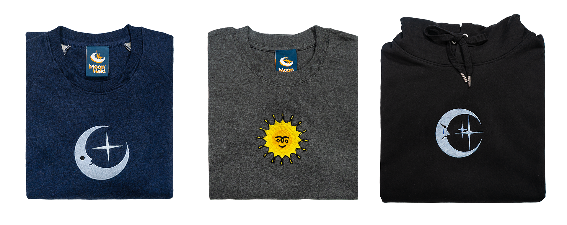 Moon Smile Embroidered Sweatshirt - Deep Sea Blue